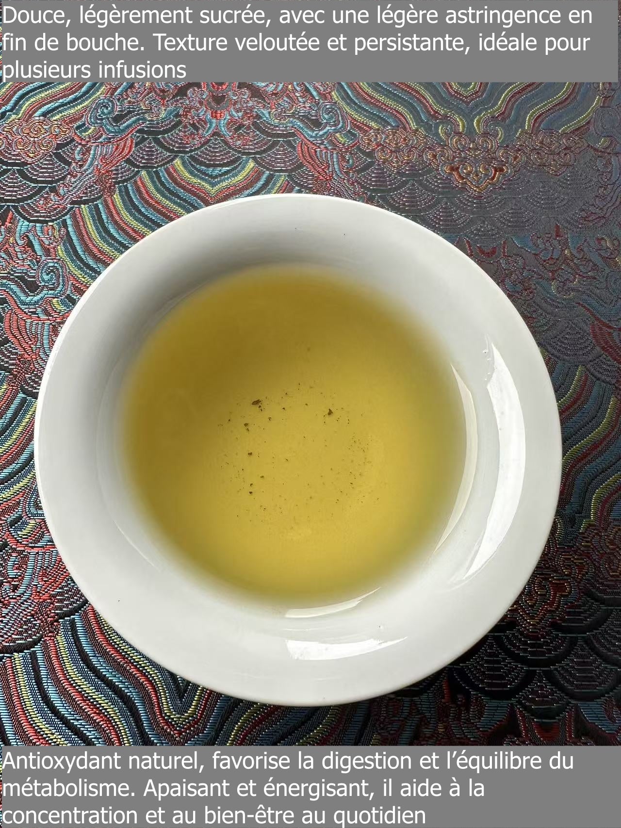 - Première infusion rapide (rinçage des feuilles en 10 secondes).